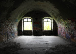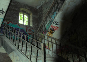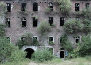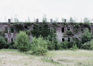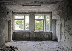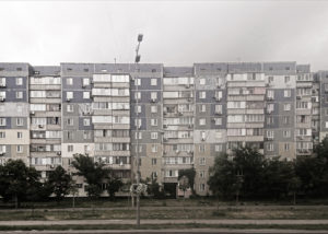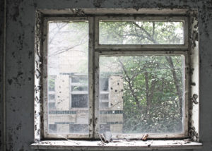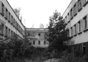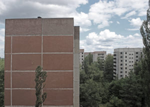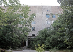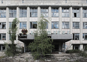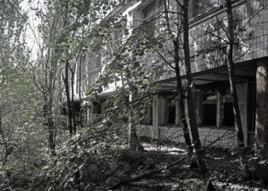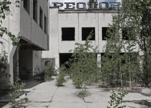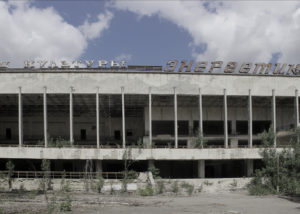 Back side of the abandoned Kinoteatr Prometey in Pryp’yat [...]