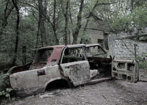 Abandoned trains at the Yaniv station. In the Chernobyl exclusion [...]