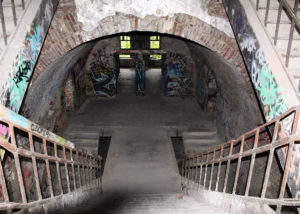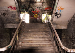 Entrance to the abandoned Kinoteatr Prometey in Pryp'yat'. With [...]